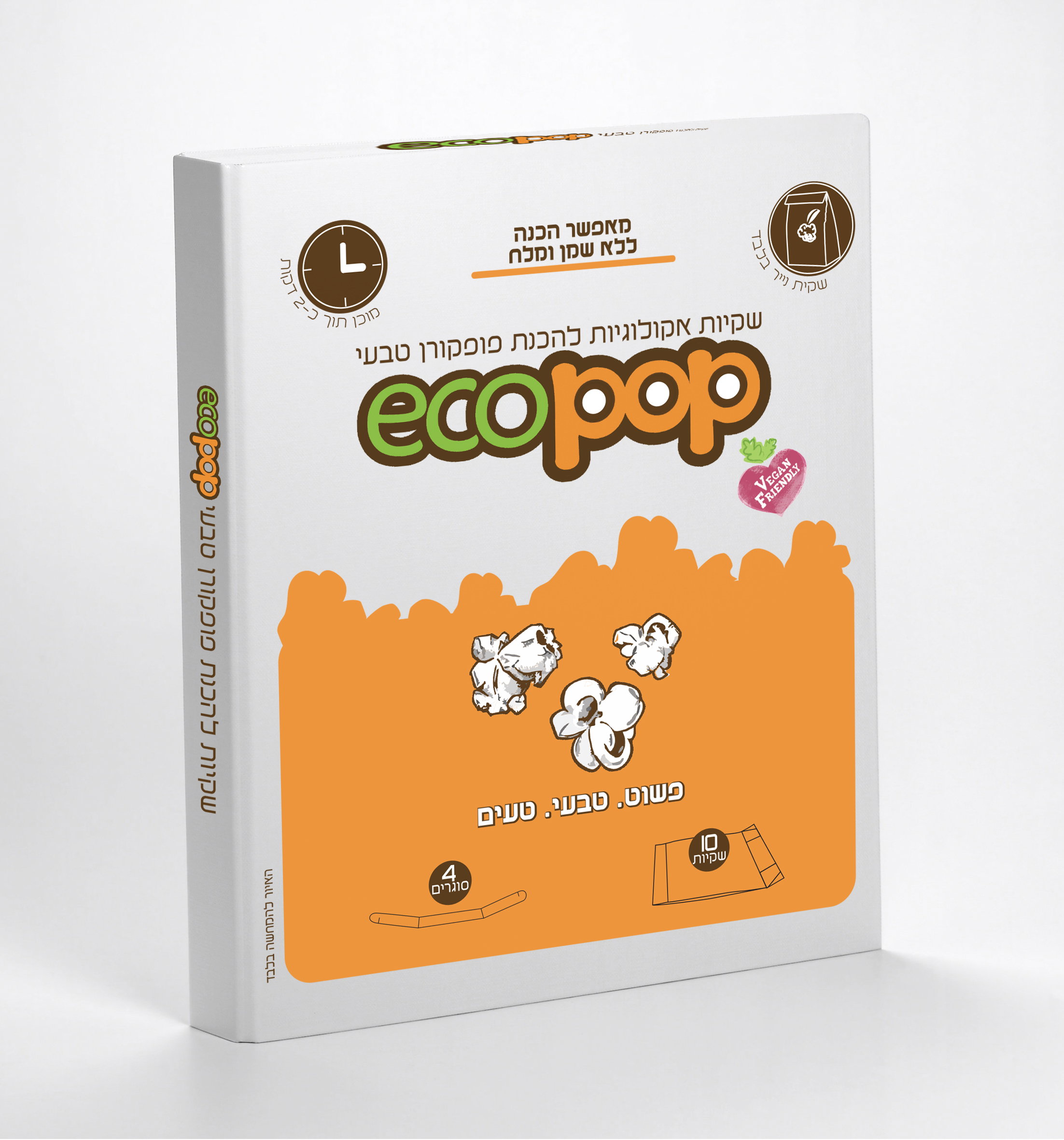 במסגרת תהליך של פיתוח מוצרים ועיצוב תעשייתי, תכנן סטודיו גריזים שקית פופקורן אקולוגית עבור EcoPop.